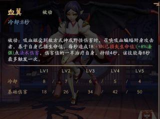血翼的加成伤害有一部分来自已损失生命的百分比,所以是血越少,造成的伤害越高(同时恢复的血量也越多)且配合天生被动血族的残血全伤害加成,在低血量的时候能有不俗的伤害和血量恢复,此技能乃吸血姬的反杀立命之本