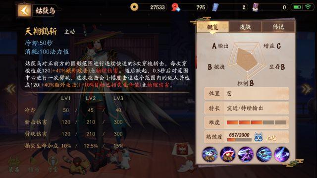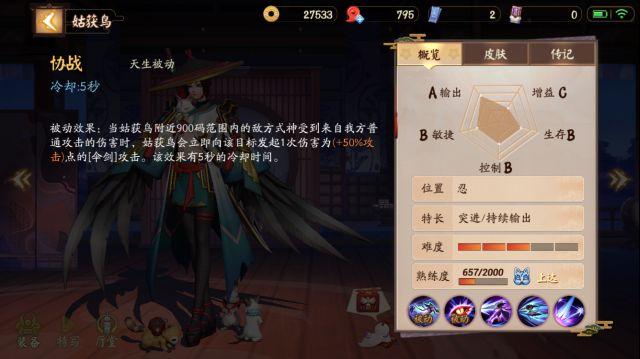 该技能无论在进攻追击,或是撤退逃跑时,都能给姑获鸟自身以及团队带来良好的收益