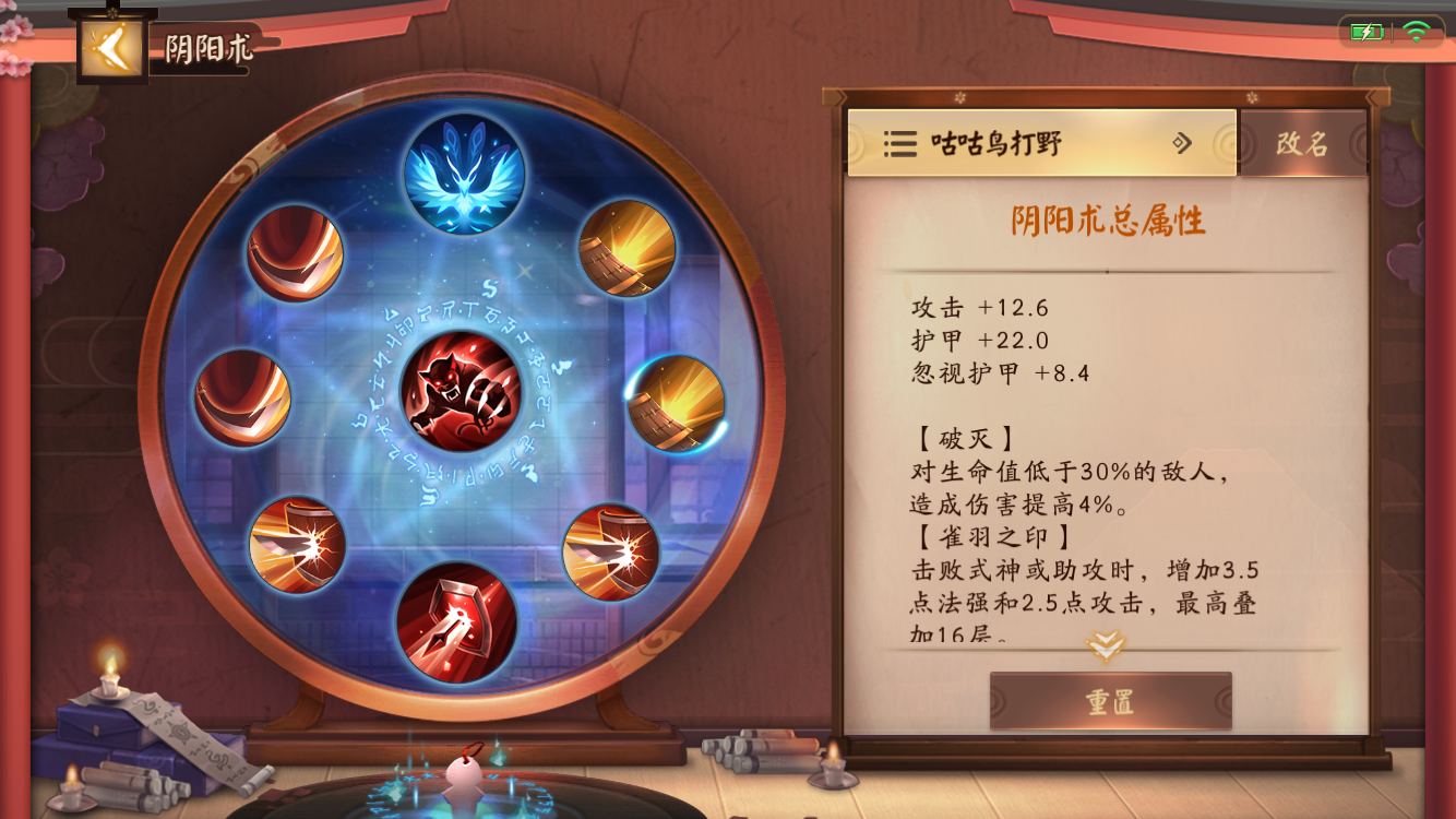 中级阴阳术选择了雀羽之印和破灭,根据打法破灭可以替换影狩
