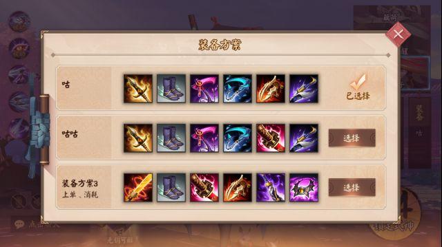 因为每个式神根据每一局的局势不同,出的装备应该都是灵活搭配的
