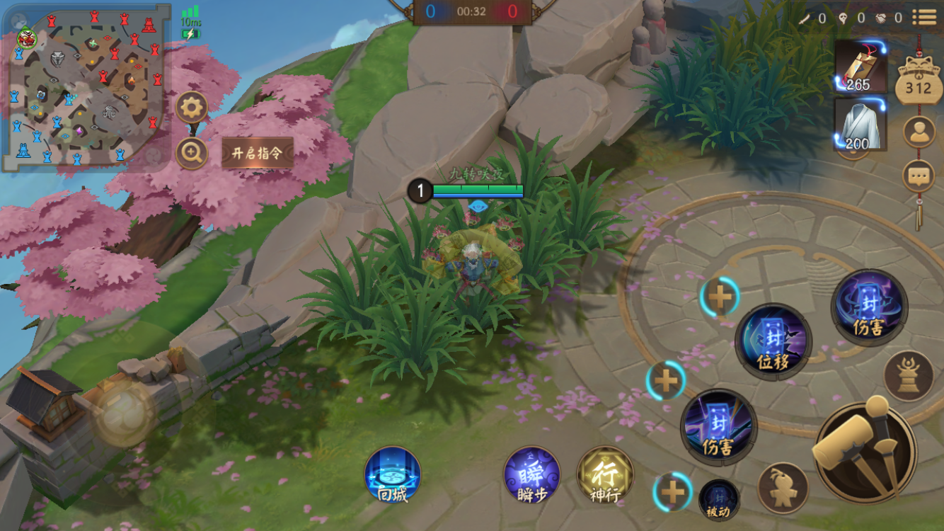 速度推线过去以后可以自己也可以呼叫打野,进入草丛后触发影狩,等待兵线回到上路中间然后3A2A消耗。同理上方草丛、河道草丛都是可以的,这也就是为什么对线式神也会推荐影狩。