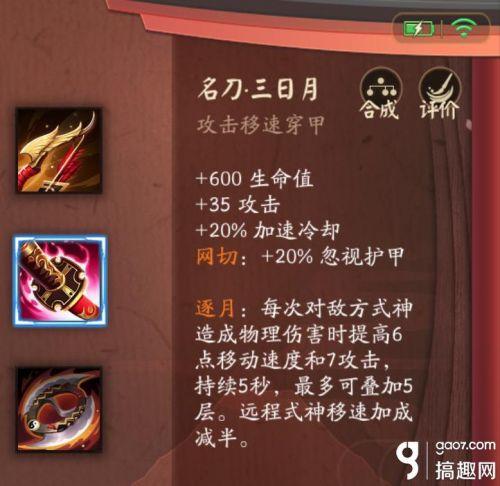 最后一件装备视情况而定:如果自己已经不得不配合队友处理前排,那么建议出名刀.三日月(黑切),既增加血量,又有护穿,还有冷却。性价比非常不错。
