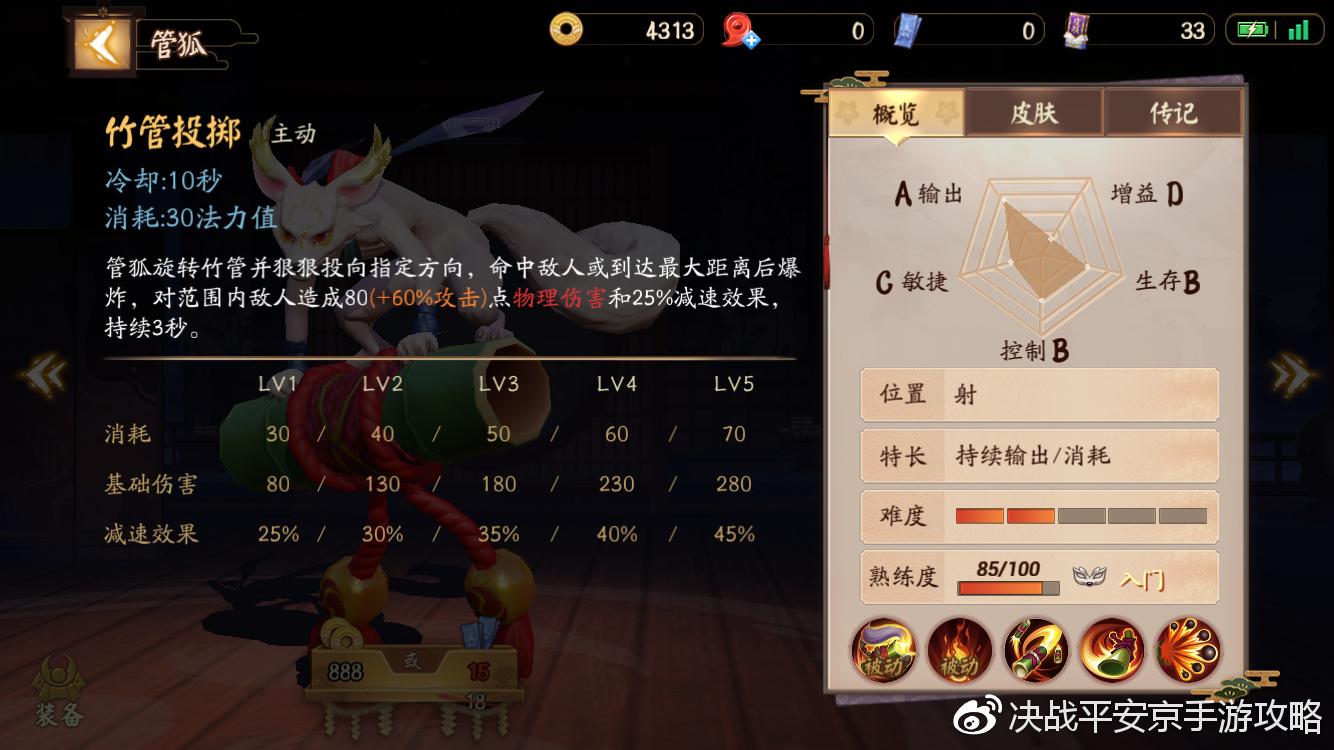 在决战平安京当中,射手位置醒来都是后期的主力输出之一,远程攻击的他们在输出环境当中始终有着得天独厚的优势。不过,也不是所有的射手都是后期主力,有些射手在前中期比较强势,在后期反而有些疲软。今天,攻略娘就来为大家介绍一下前中期特别强势的射手——管狐。
