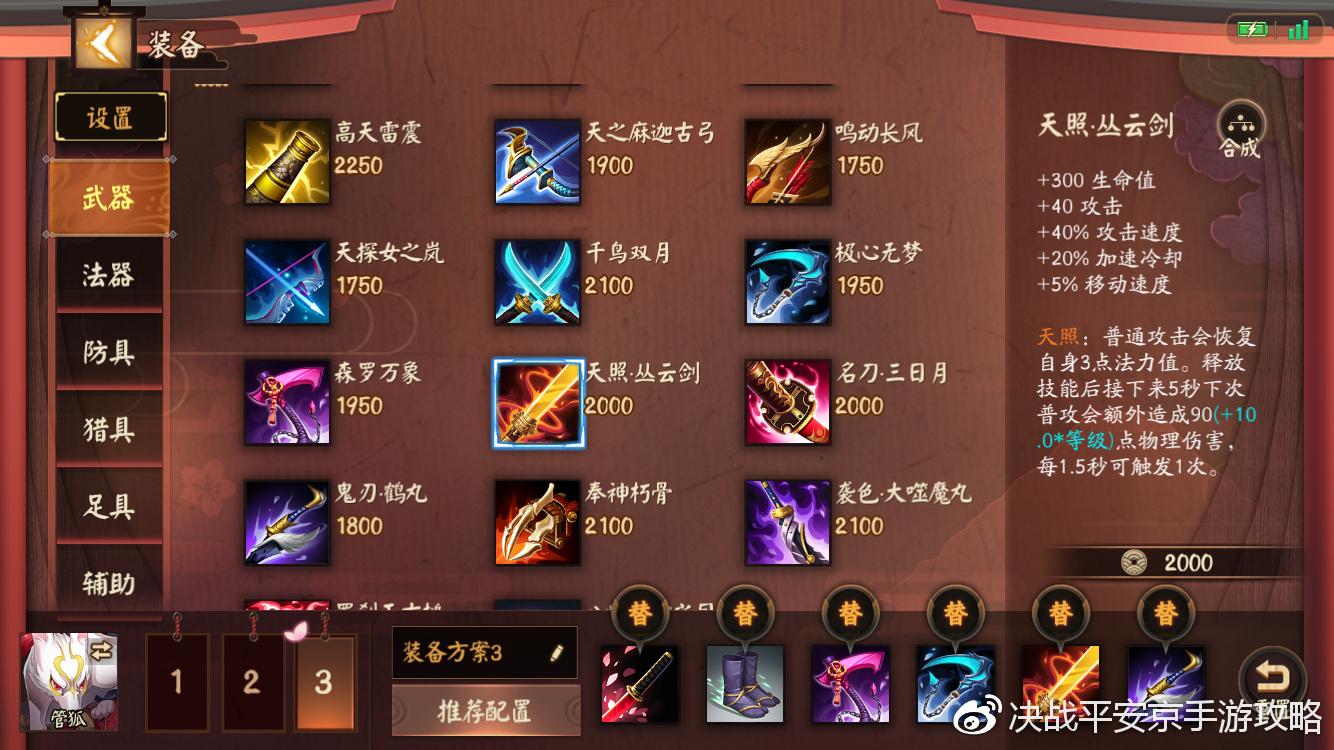 但是技能流最主要的问题,就是在放完技能之后就没有有效的输出能力了,因此我们可以选择出天照·丛云剑来提升管狐的普攻伤害。每次释放技能之后就普攻一次,不仅可以弥补技能空档期缺失的输出,还可以等待下一次的技能冷却。