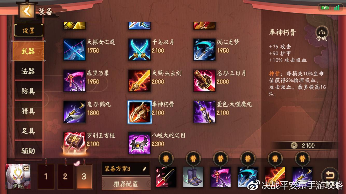 如果对方的物理输出较为强势的话,可以将凶刀·鬼丸替换成奉神朽骨,以此来提升低血量状态下的生存能力。