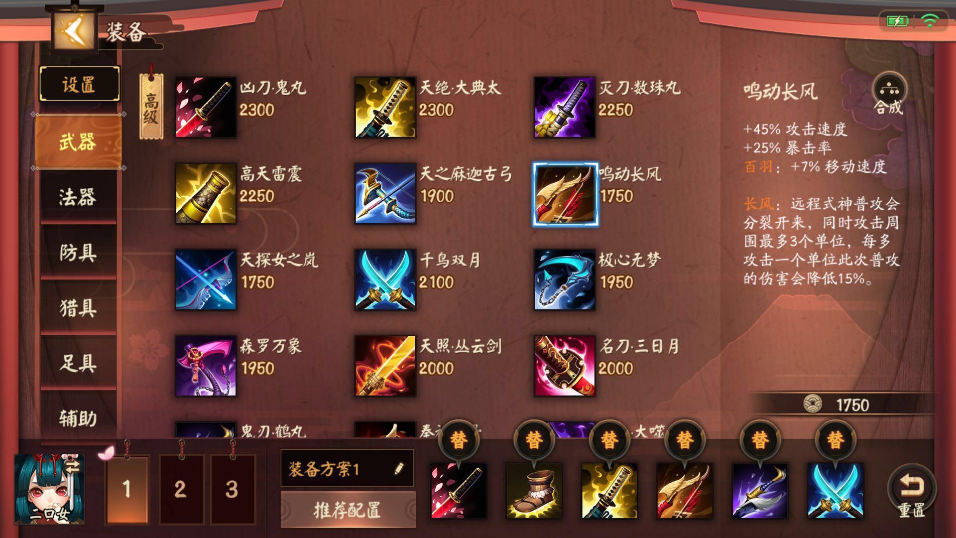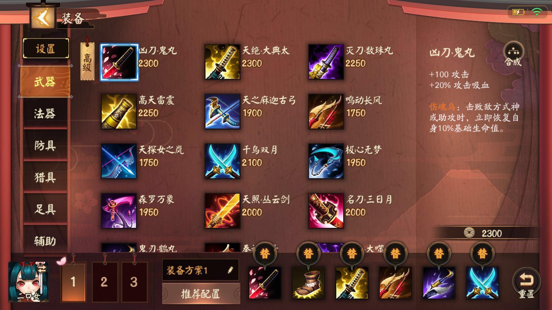 之后要出的装备补充一点攻速与暴击即可,比如天绝·大典太这样物理攻击和暴击并存的装备。