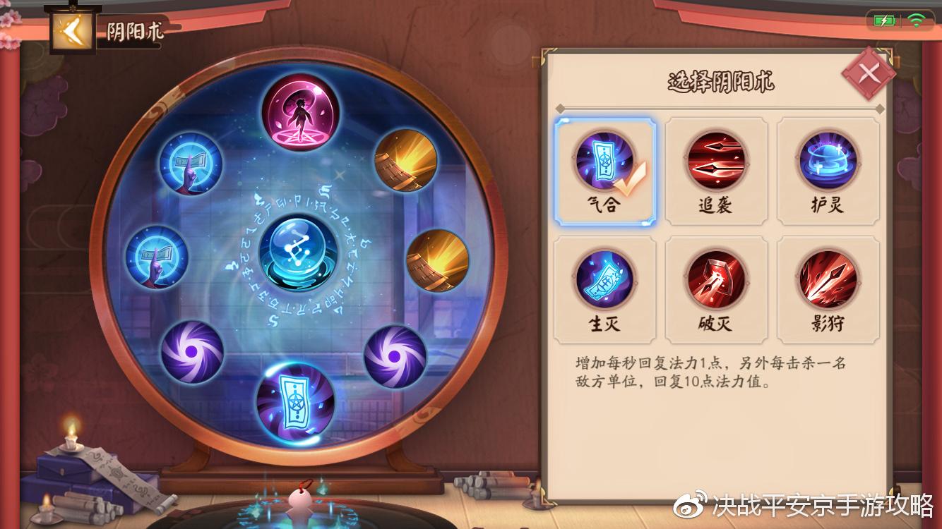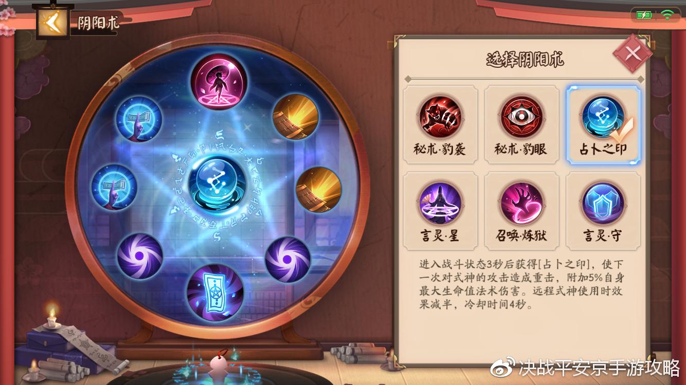 在阴阳术的搭配上我们需要以增加生存能力为主,毕竟狸猫是一个守类式神,就算选择了增加伤害的阴阳术也很难打出输出,因此阴阳术的搭配为: