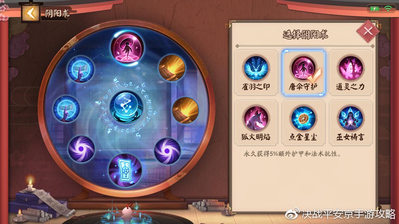 唐伞守护可以永久获得额外5%的护甲值与法抗值,对于狸猫这个几乎没有输出,但是就是护甲法抗高的式神来说配合完美。