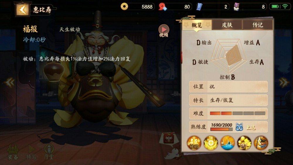 惠比寿的技能介绍完了,接下来是他的阴阳术。
