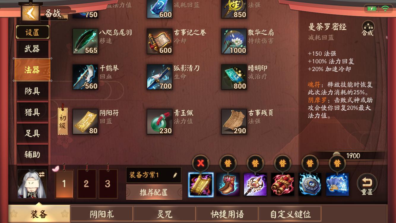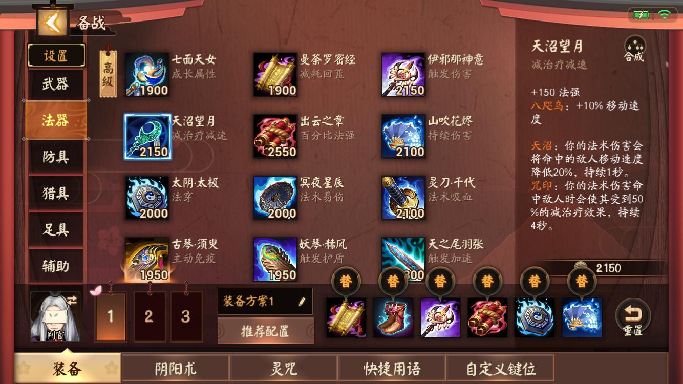 当然,系统默认出装中的曼荼罗密经可以替换成天沼望月,在天沼望月加强之后,优秀的减治疗效果可以在一定程度上压制对方的射手的回复能力。不过,替换成天沼望月之后会导致加速冷却属性的不足,因此具体是否替换这件装备,还需要根据实际情况进行取舍。
