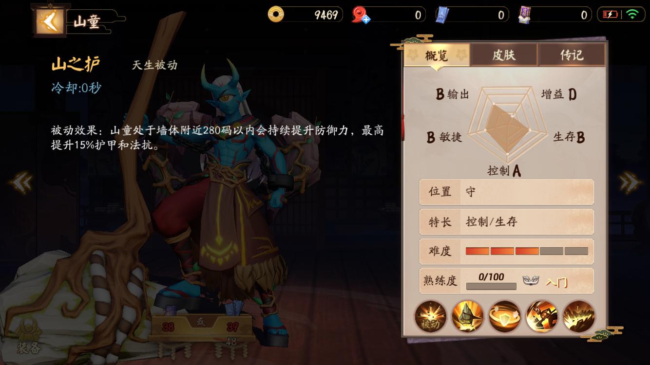 山童的被动技能可以为山童提供相当可观的双抗提升,让山童在小范围的遭遇战中有非常强大的伤害吸收能力,在对线阶段也拥有至少领先一件装备的优势。不过,被动技能的触发范围只有280码,没有办法太过远离墙体,因此在大规模团战当中很那发挥出作用。