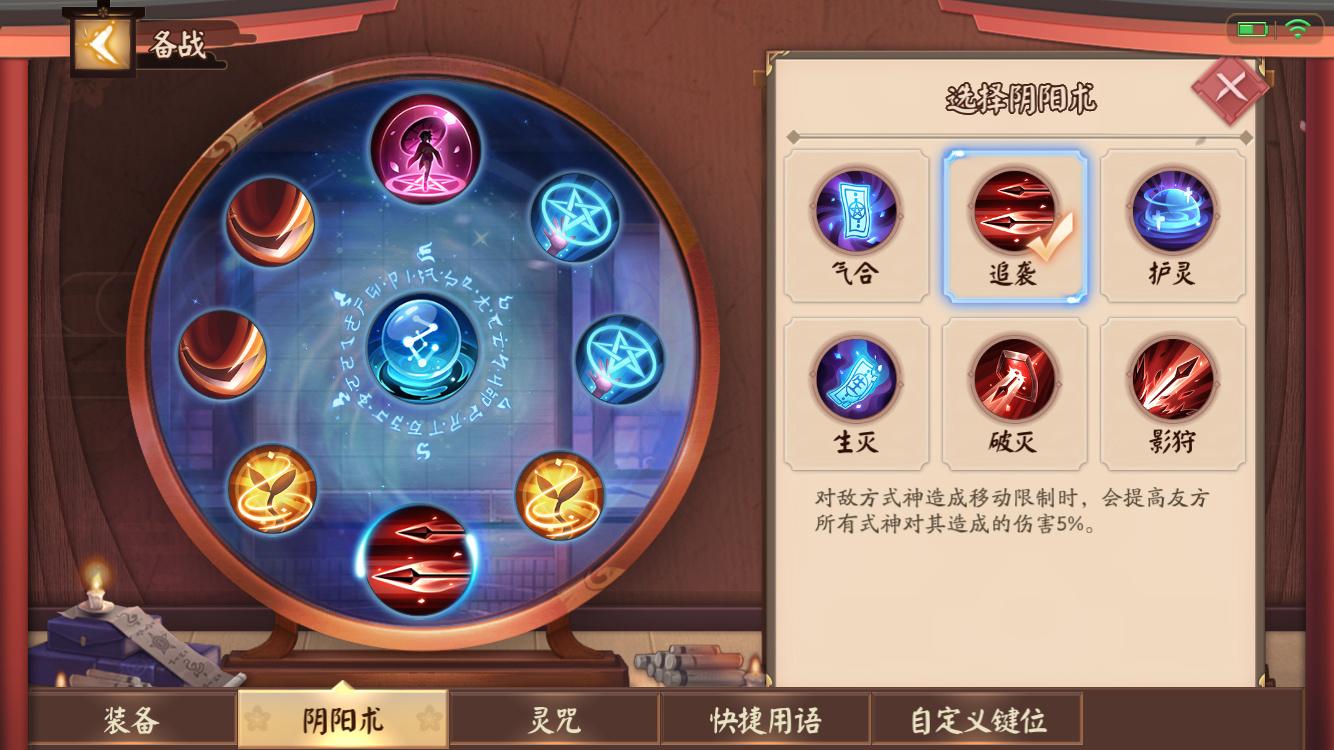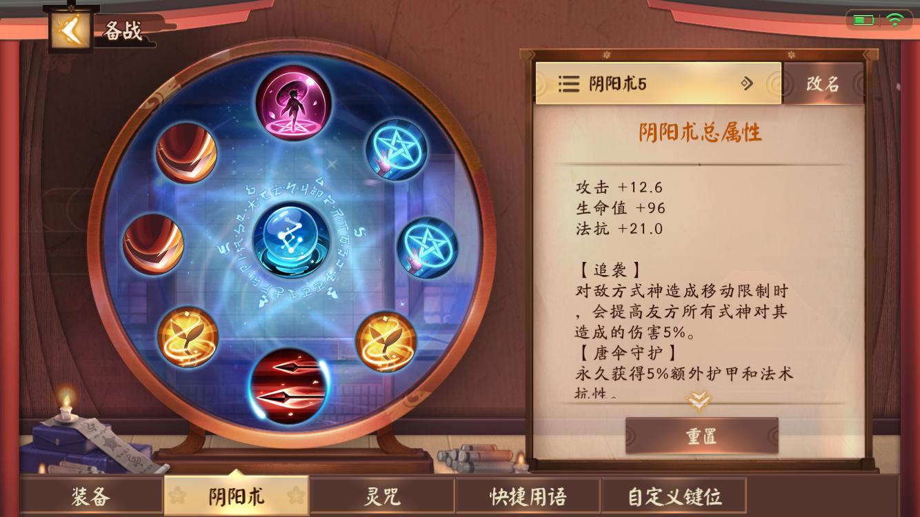 由于山童的定位是坦克,因此我们在阴阳术的选择上就比较固定了,只需要在系统的基础上进行修改即可,具体阴阳术搭配为: