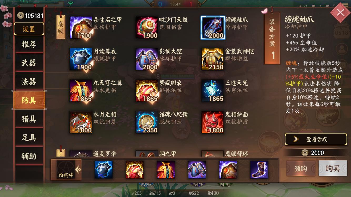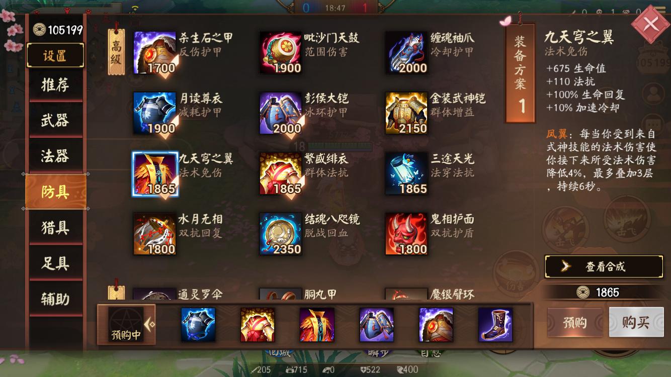 当然了,如果这三件装备同时出的话你就会发现加速冷却属性已经溢出了,因此大家还需要根据实际情况进行选择,如果对方的法术输出不算太高的话,可以选择不出九天穹之翼,转而选择鬼像护面毗沙门天鼓这两件装备,如果对方的法术输出较高的话,可以选择将缠魂袖爪替换成提升法抗的繁盛绯衣。
