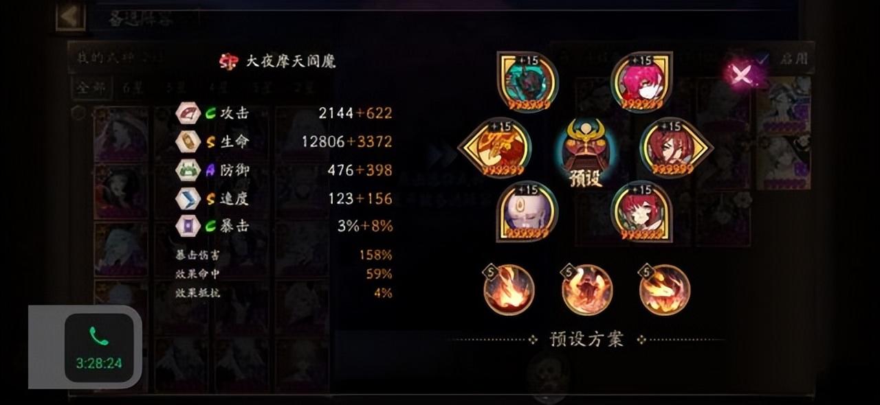 腹肌:速生攻招财,防御/生命两件套,速度超吞最好,最低也得140+吧,配置不够能不能玩,当然可以,就是会比较降低体验,相同的速度御魂优先选择副属性带生命加成/防御加成/攻击加成的,这点和下面的鬼吞小山风一样。