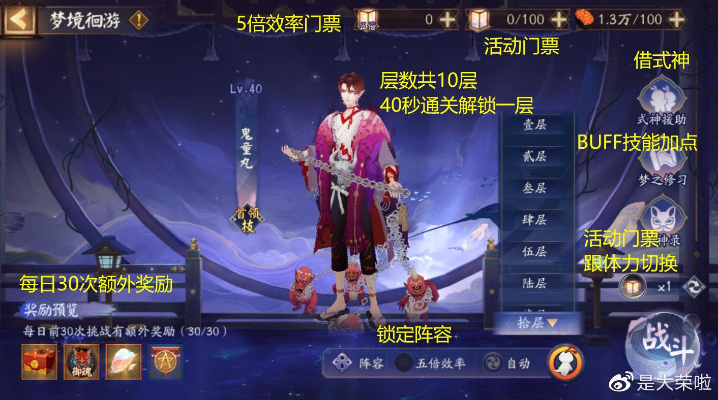 爬塔也有无限次数借用好友式神功能,以及「梦之修习」活动技能加点提升战斗体验。
