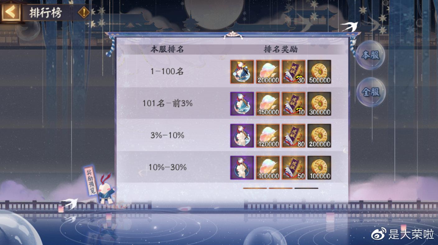 区服排名有奖励,但是区别不是很大(挂件是限时的)。