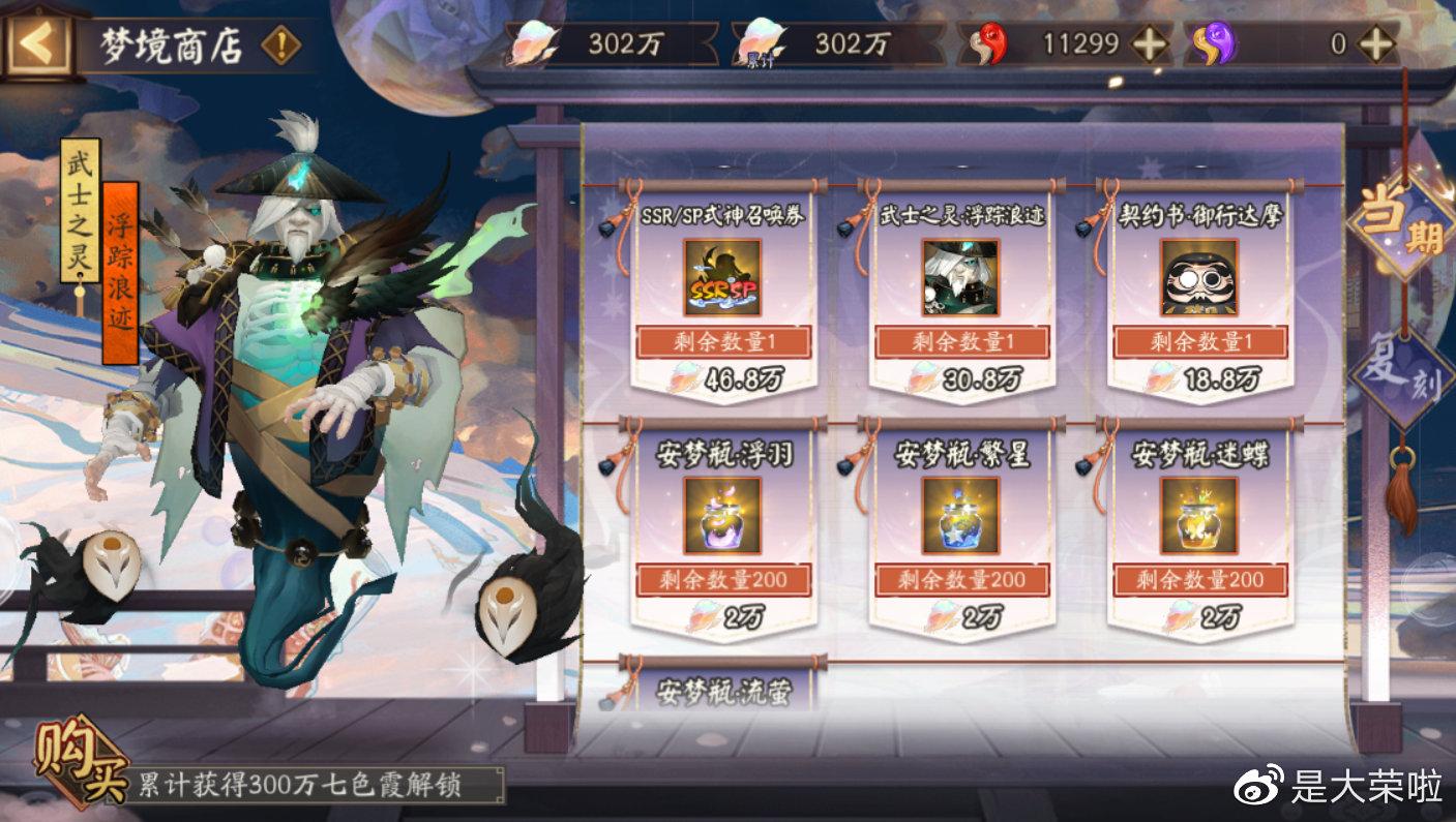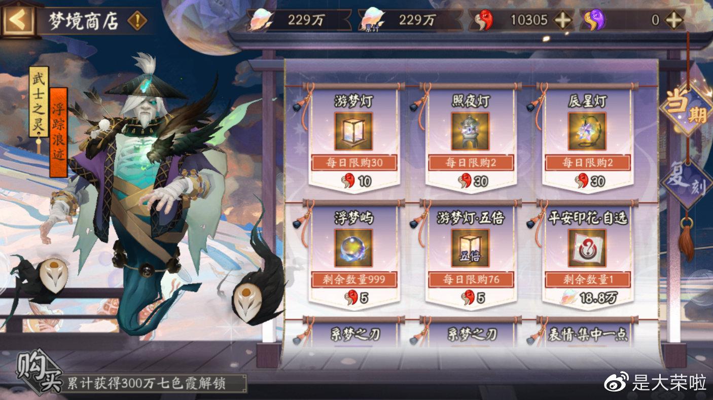每日系统会发放30个「浮梦灯」(下简称门票),最多储存100个,到达上限后则不会继续发放。门票可以通过勾玉购买or活动版花合战方面获得。