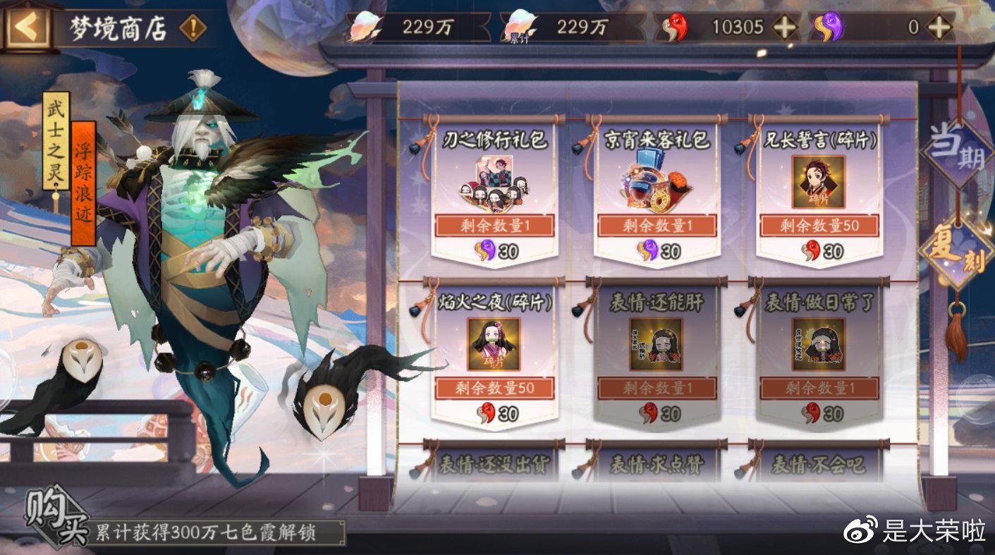 除了常规项的物资奖励(盲盒召唤、一万体力等),还有联动的式神印花、表情包、插画、动态头像框以及武士之灵的新皮肤获得。