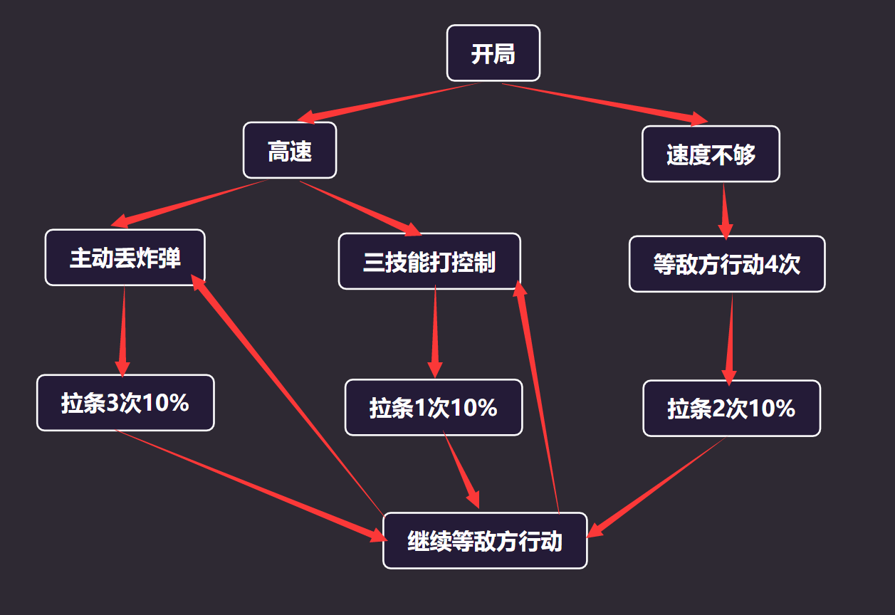 既然如此,痒痒鼠们应该也都能get到她更适合一速体系这一点,毕竟丢炸弹并没有先机效果,如果轮不到SP山兔出手,那么一切机制都如水中月镜中花,尴尬程度堪比奶切。不过后手也并非不能玩,毕竟“敌方行动4次就会丢两枚炸弹”这一条机制存在,保证SP山兔不被控制,她就可以丢出炸弹触发拉条效果,让后手体系寻找反打的timing。