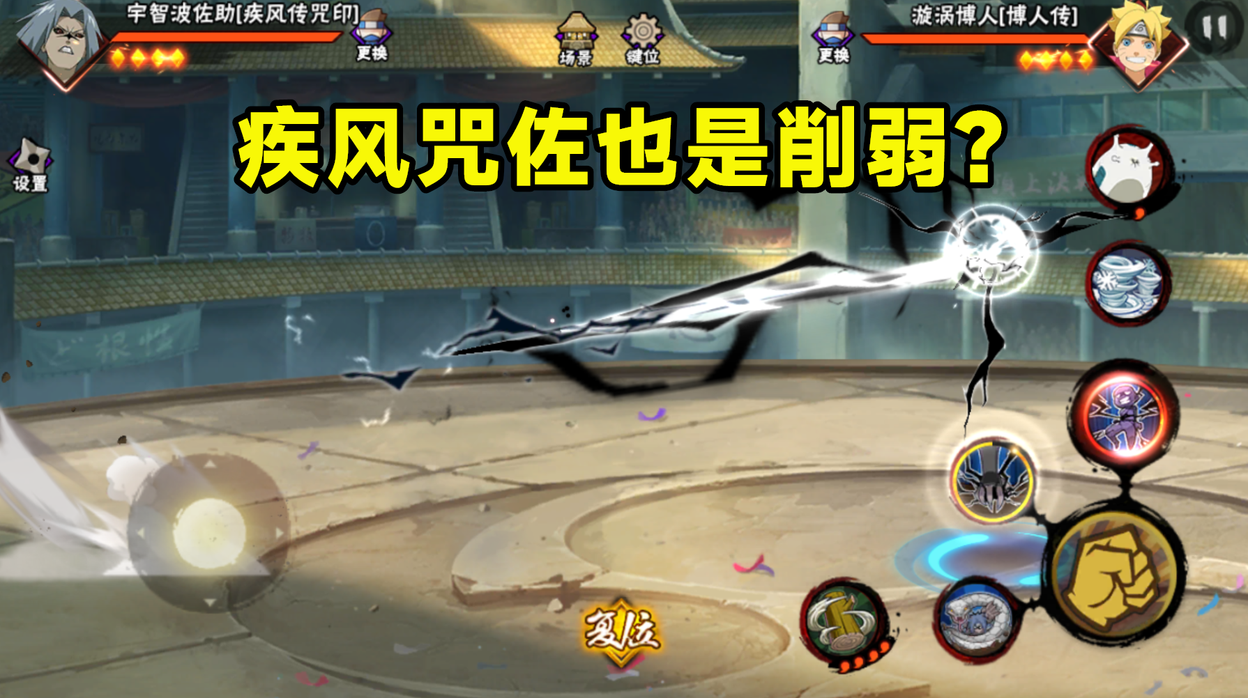 然后就是疾风咒印佐助,这个忍者我一直觉得不太可能是纯削弱,大概率是平调。毕竟现在用的人也不多,强度虽然不算低,但肯定没办法跟暴怒带土相媲美。结果,秋风透露的疾风咒印佐助却是削弱,还好改动的地方并不多,只是把二技能增加了一些前摇。我之前奢望的奥义可以增加多段抓取的效果,看来是要泡汤了。如果说暴怒带土的削弱是意料之中,那疾风咒印佐助的改动应该是出乎大部分玩家的意料了。