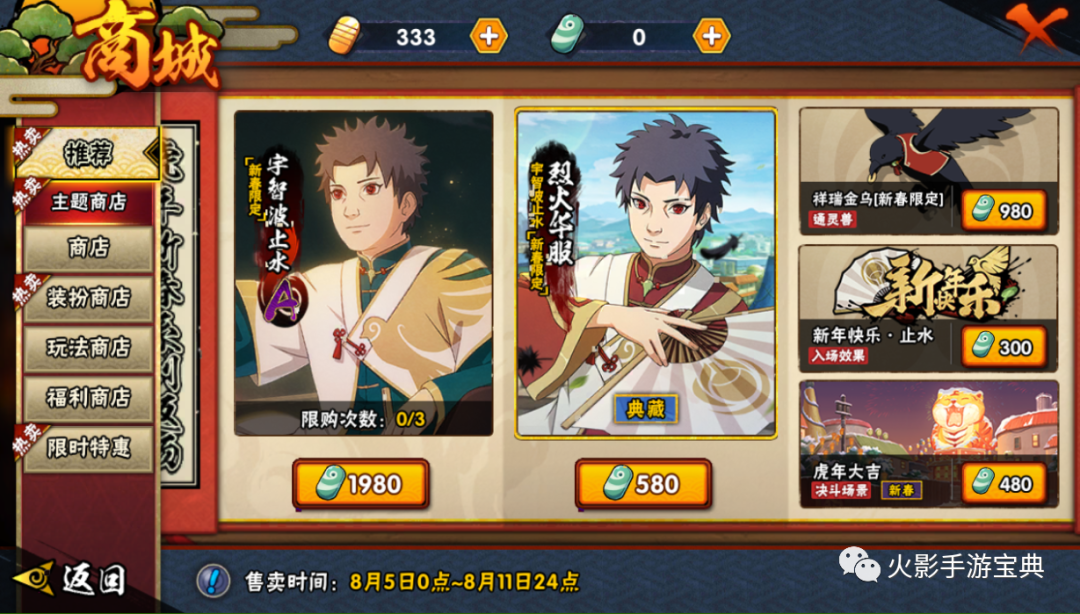 谢谢大家也应该发现了商店有了一个很明显的变化,只要你打开它就是返场忍者的全套,从新春止水,泳装卡卡西,漂泊二代,感觉以后都会偏向于这种情况。