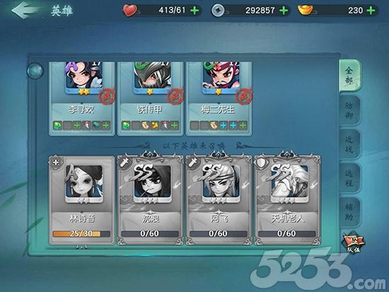 每个英雄都有其特定的属性,分为防御近战辅助远程总共四个类别。角色收集越多搭配越丰富三星过关的可能也越高。