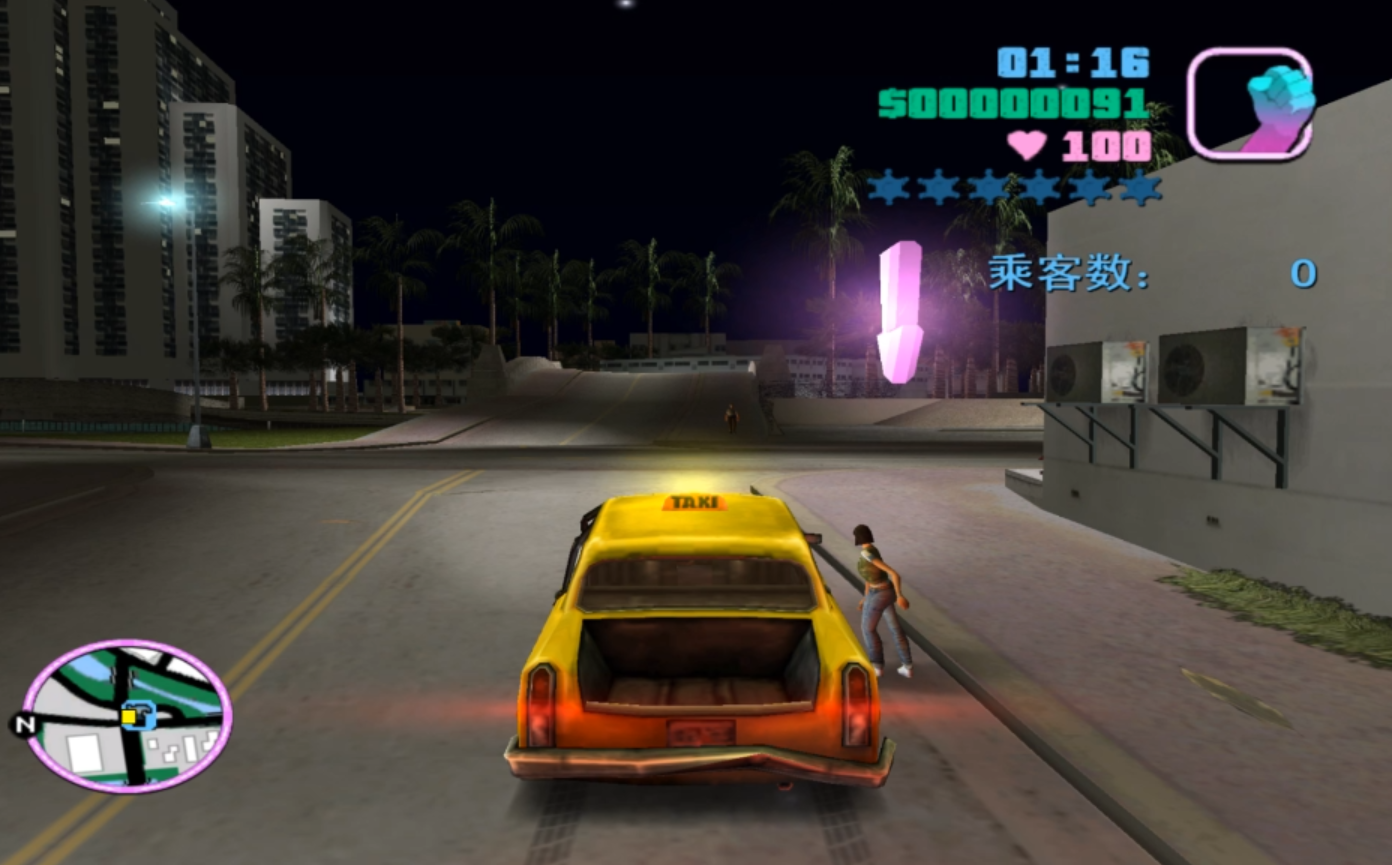 出租车虽然在游戏中很普遍,但是运气不好还真就找不到。可以开车在满大街寻找,看到之后直接截住,然后抢车即可。