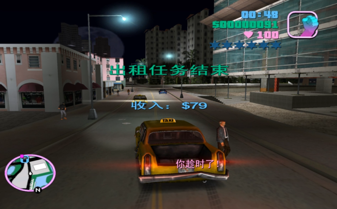 超时了还没有送到的话,顾客就会气愤下车,然后甩出一点点钞票。此时玩家可以下去将他干掉,反正钱没有收够劳资不干。