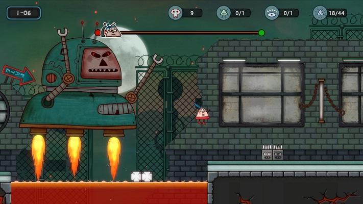 偏偏“马里奥”们又自带鬼畜属性,不想虐己,看他们祸害别人也乐趣十足。比如“魔改《马里奥》”的《猫里奥》,以及成名已久的《超级肉肉男孩》(Super Meat Boy),它们都以难度顶天而闻名,以至于玩家可能会吃瘪到气急败坏甚至砸键盘,围观者心中暗爽之余,也不由跃跃欲试,炫技一把。通常情况下,也是“自寻死路”。