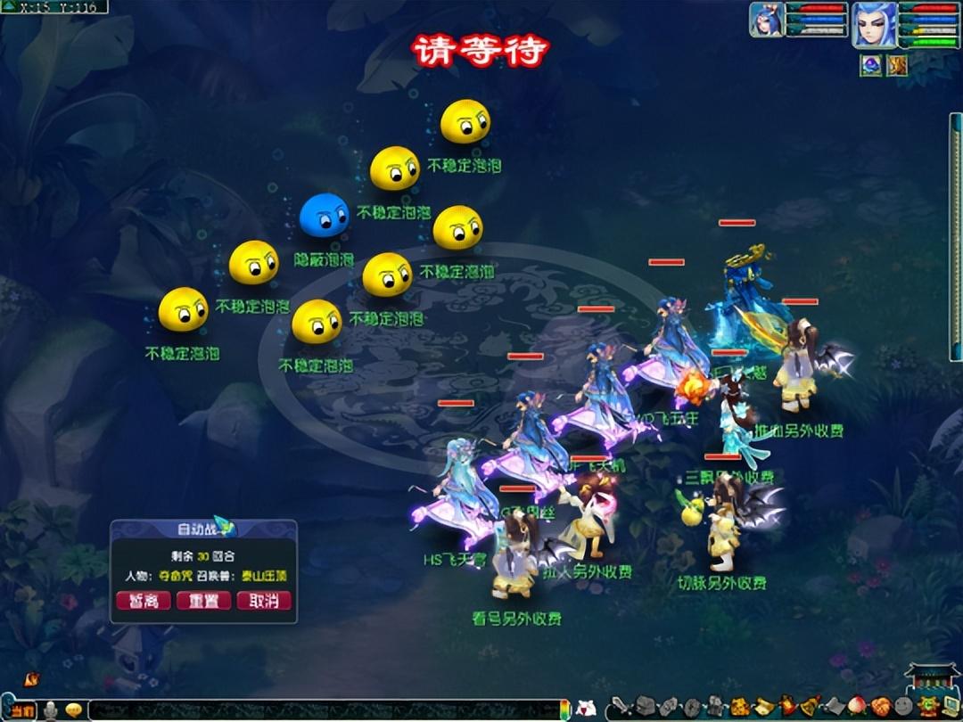 本次挑战BOSS为泡泡王,泡泡王有两个阶段,合体阶段(只有一个怪物)时,奇数回合(1/3/5)会使用群秒法术,偶数回合(2/4/6)会进行防御,各位小伙伴可以利用这个机制计数回合打输出,偶数回合回血即可。