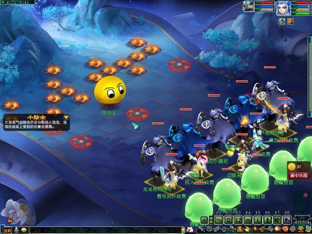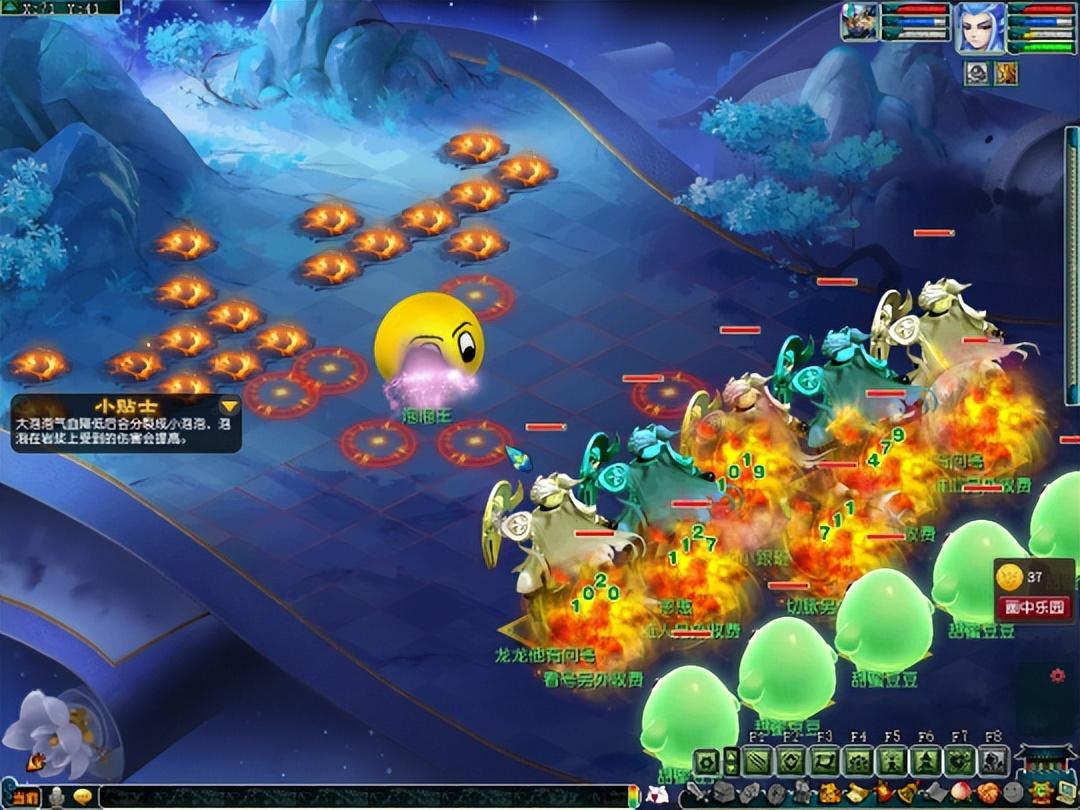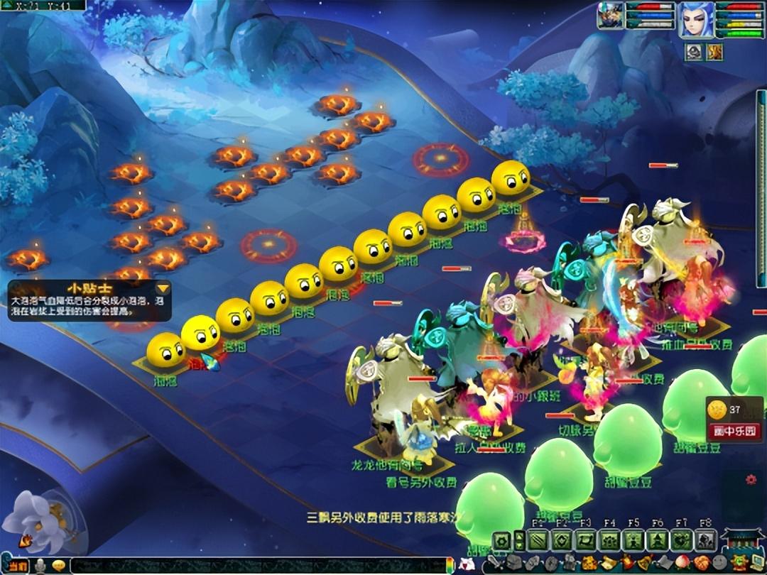 分裂阶段的泡泡伤害能力较高,建议瞄准一个进行点杀。如果发现有在地图连体圈内的,点它收益最高。需要注意的是,分解阶段的泡泡会一直输出,所以需要及时接起罗汉并回血。