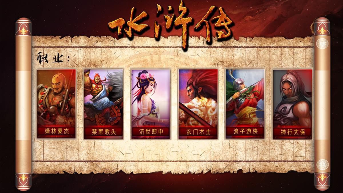 《水浒传》目前共有六大个性鲜明的职业,绿林豪杰、浪子游侠、禁军教头、神行太保、玄门术士及济世郎中这六大经典职业,玩家将师承108位水浒群雄个性鲜明的特点。