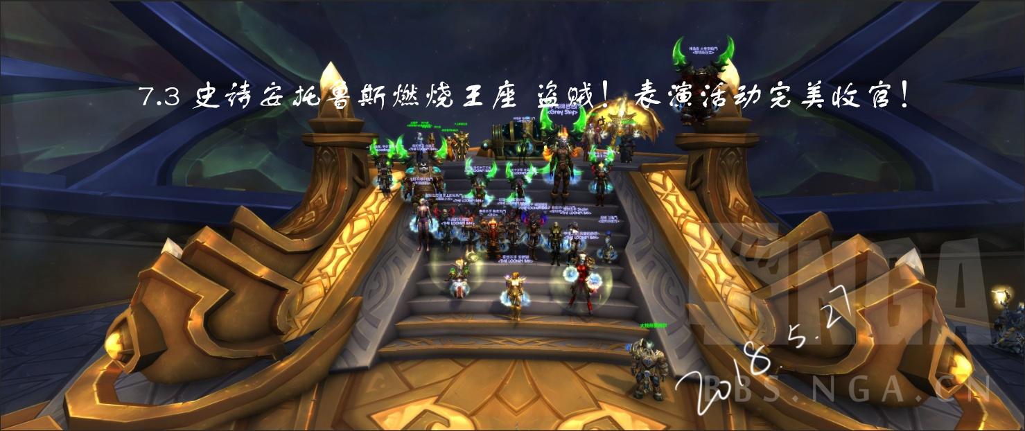 经过2天晚上共计5小时大家的不懈努力,单一输出职业:盗贼!史诗安托鲁斯·燃烧王座表演活动终于完美结束。这是盗贼表演活动开启的第三个版本,盗贼们再次站在了表演活动的FD舞台上!