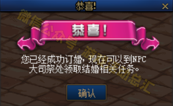 输入对方角色名并确认后,对方会弹出一个求婚窗口,接受即视为订婚成功。