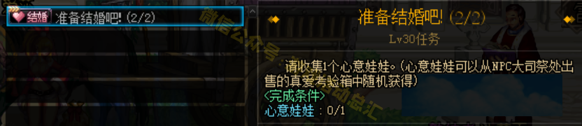 订婚成功后,NPC[大祭司]处会出现一个任务,双方接取后一起组队通关5次任意地下城即可完成。