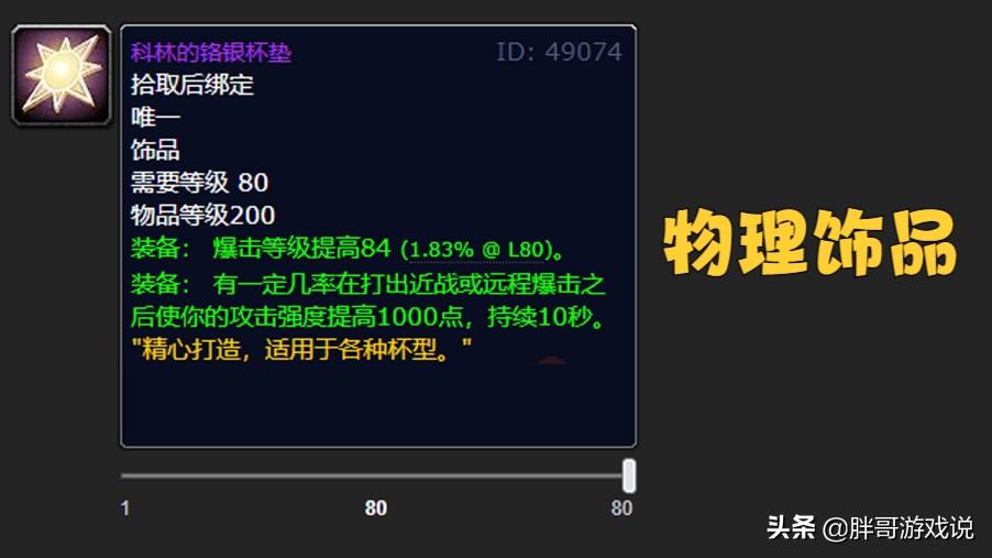 无论是狂暴战和潜行者,还是惩戒骑和DK,乃至增强萨和猎人都可以在版本初期使用科林的烙银杯垫。如果有条件的话可以搭配暗月卡牌饰品,没有的话则可以搭配任意一件饰品。