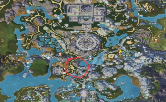 三尸九虫任务菩提花果位置如下图红圈所示: