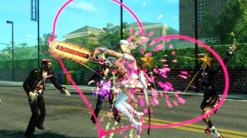 游戏的故事背景设计的有点清奇,因为当年本作主打欧美,所以美式幽默与与无厘头是必备了。在本作中,玩家将扮演女高中生朱丽叶,女主角朱丽叶是美国西海岸最大的一所高中圣罗梅洛的一名学生,当然在美国,正如任何对自己容貌有自信的青春美少女都会喜欢加入啦啦队一样,朱丽叶更是其中的佼佼者,她是一名啦啦队队长。但是朱丽叶的身份背景可不是什么软妹子这么简单,她的家族是一个极其古老代代相传的丧尸猎人家族,朱丽叶自然也继承了家族丧尸猎人的身份与本领。