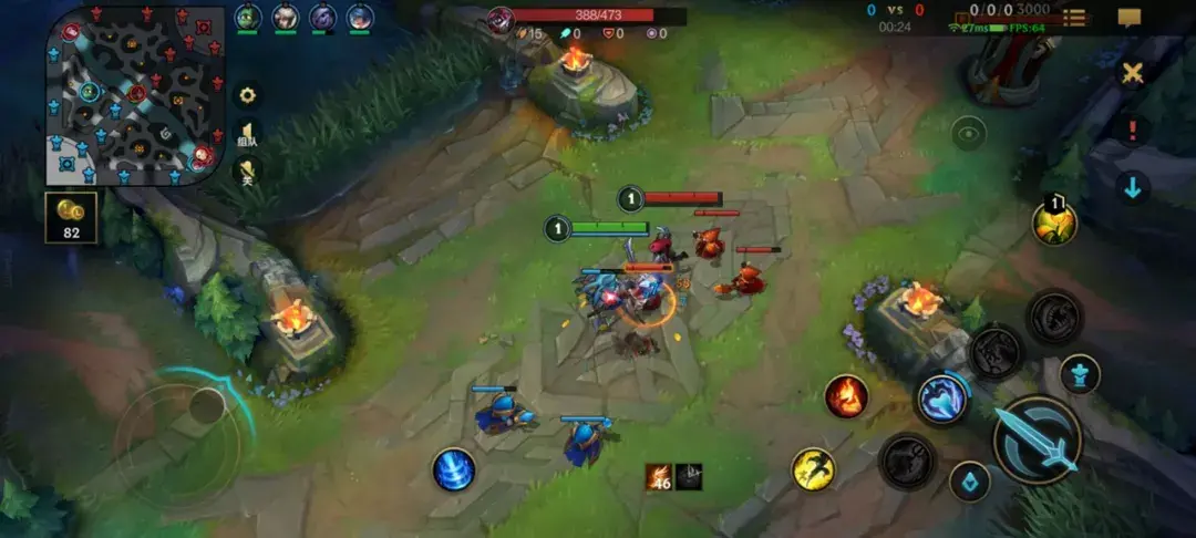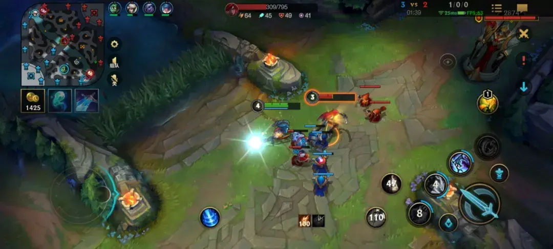 我们对线安稳补刀发育就行,如果不是长手英雄,他是不敢上来换血的,如果非要和我们换血,我们可以利用W打残血小兵去溅射一下敌方英雄,之后WQ追击,如果他闪现我们可以E跟上去,闪现可以留着追击或者逃跑。
