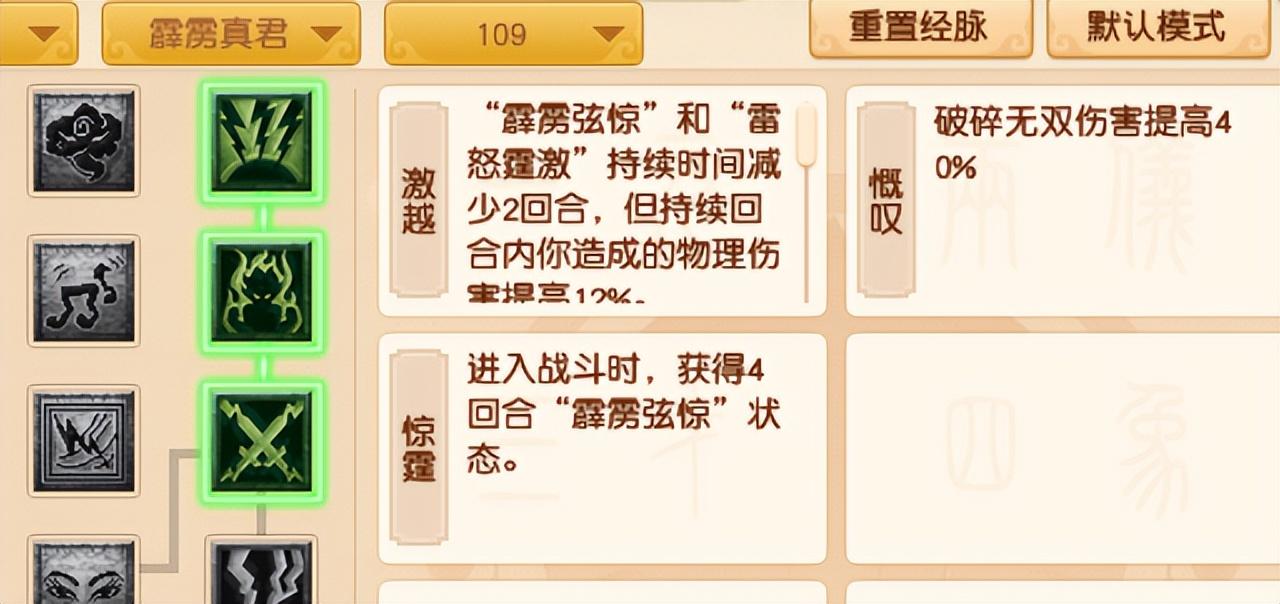 但也只能单点用一下,用了这个经脉,日常秒三输出还是靠天雷斩。