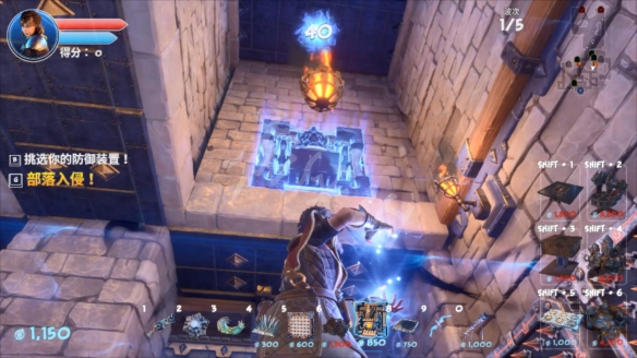 所以推荐将防御重心摆在城堡内,地图右侧的路口可以用路障堵住。这样正门进来的敌人都会往左侧走。
