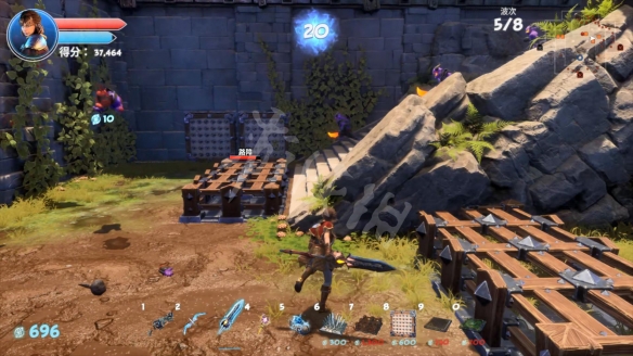 前几波进攻没什么压力玩家注意在对应的路线设防就可以了。后几波敌人会开始从两扇门里刷出,我个人选择了在中间的广场布防。