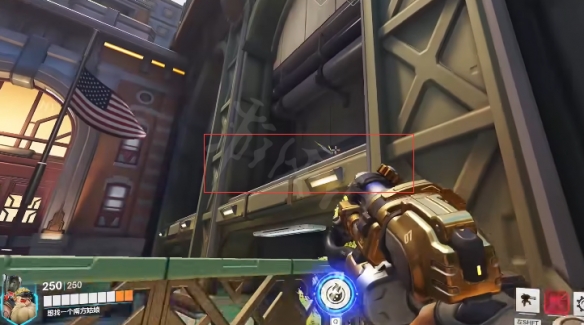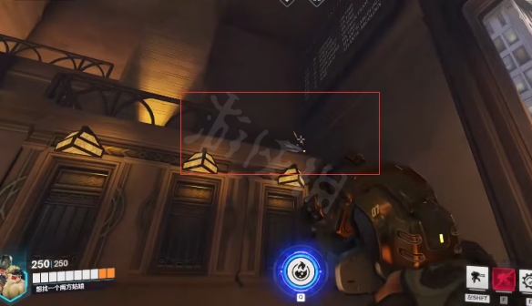 2.对准图中这个建筑的这个角跳起丢出我们的炮台。
