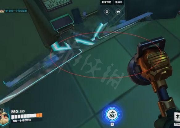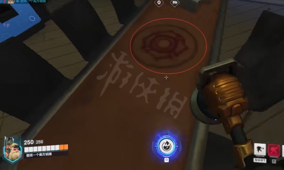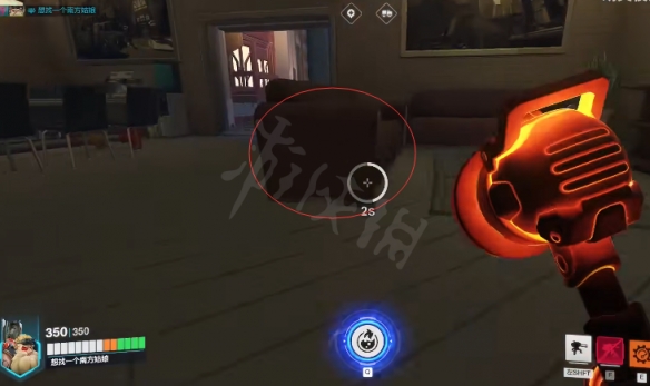 2.对准桌上的图案,丢出我们的炮台,要是怕周围的椅子影响,可以先把椅子敲掉。