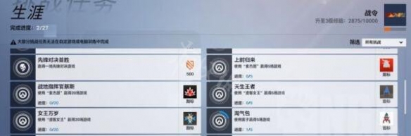 游戏还有生涯挑战任务,生涯挑战则包含少量战令经验、英雄专属挑战头像以及各类头衔。