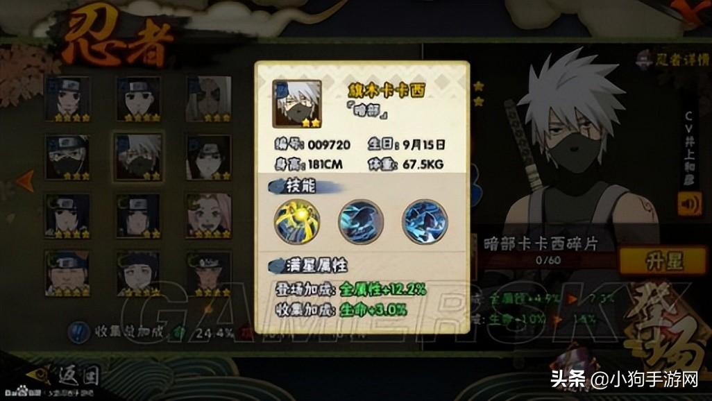 火影忍者手游中,暗部旗木卡卡西还是比较厉害的,技能也是相当的强力,接下来就讲解一下旗木卡卡西的全部技能,以及怎么玩好这个角色。