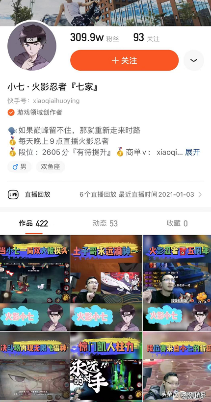 在了解了旗木卡卡西的技能后,小七分享了实战很实用的连招,短按二技能起手控制,如果未命中敌人则用一技能反手自保。技能命中敌人后衔接5A,再配合分身使用雷传,当敌人血量达到斩杀线时释放奥义技能终结对手。学会这一招,基本上萌新在用旗木卡卡西的时候就能应对大部分对局了。对于小七,可能很多萌新玩家并不了解,我们上KS搜索‘小七’后发现,小七是一名拥有着300w粉丝的顶尖主播,作为跟我们拥有着一样童年的小七,在火影忍者手游上线后便潜心钻研,目前已经是排行榜前五十的强者了,所以他的旗木卡卡西教学,我们直接拿来上分就可以。