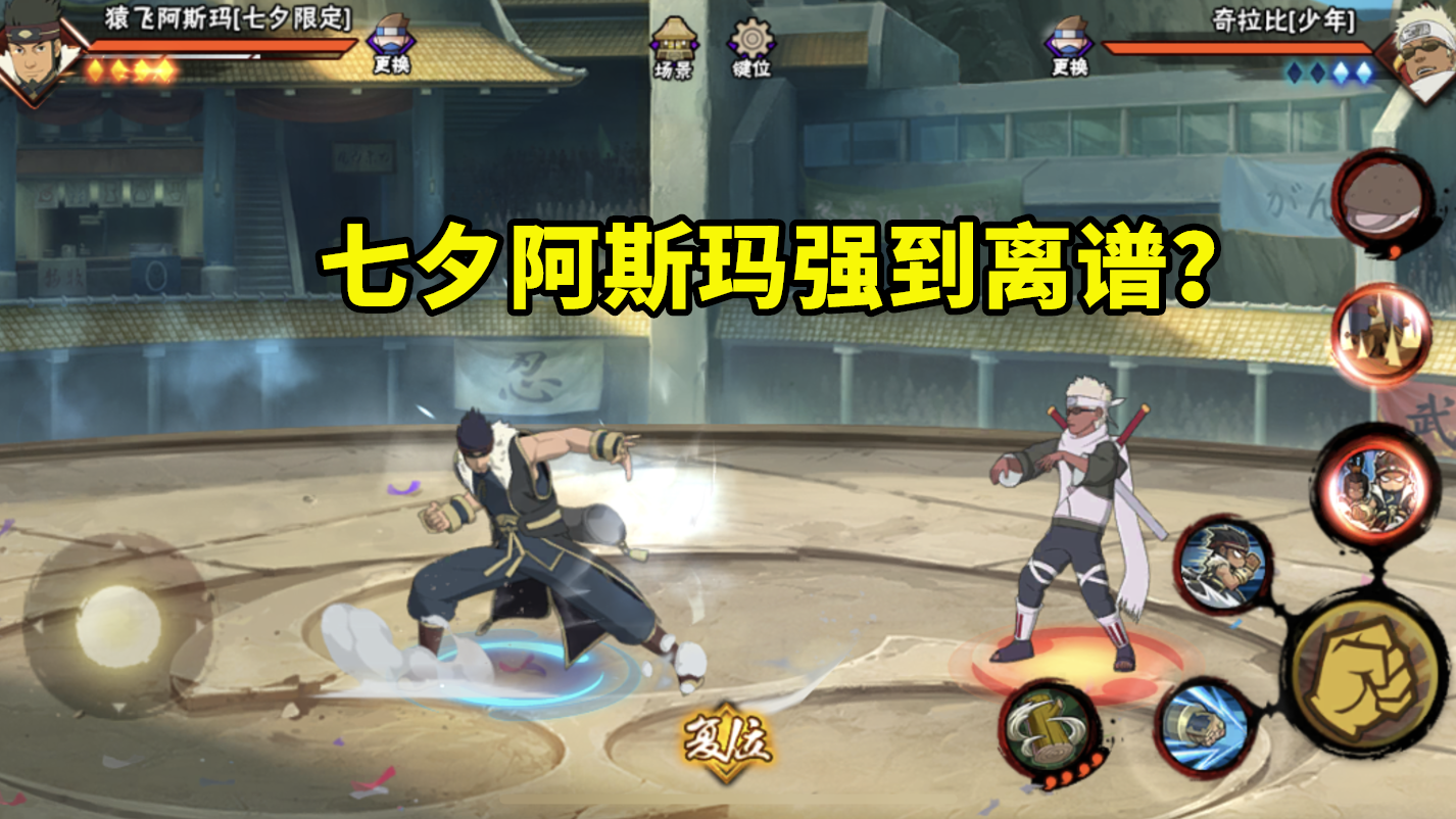 对于这个忍者,我之前已经发过实战视频和解析视频了,整体的强度表现确实可圈可点,只是在默认状态下想用二技能闪避必须要滑动技能图标来移动,这个设定感觉不太习惯,但有些玩家会觉得策划是故意这样弄的,用来限制他的强度。自从忍界大战凯青春哥火爆一时之后,七夕阿斯玛被冠上爱情哥的头衔,很显然是想走同样的路线。你可能看到一些实战视频里的七夕阿斯玛操作非常秀,各种闪避成功后技能乱丢都可以赢,还有说这个忍者的强度太离谱,比当初的忍界大战凯更无解,没有CD的技能设定,真的是用脑子想出来的吗?