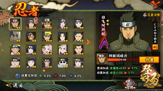 火影忍者手游阿斯玛我想很多玩家都是第一个入手的A忍,而目前我想很多玩家都很少去使用这个忍者了,作为新玩家刚做出来的时候那种激动我想老玩家都是有所体会,本周阿斯玛也作为安卓周免出现在了我们的决斗场上,今天就为大家带来阿斯玛的使用心得。