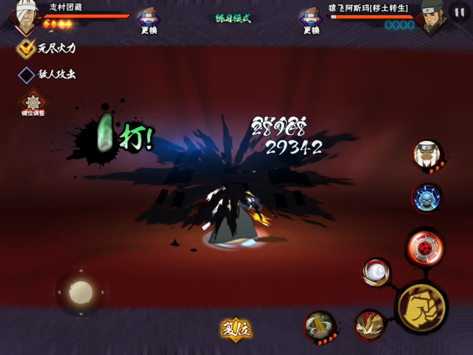 所以团藏这个忍者偏向于远程压制,如果少了伊邪那支状态下的剑气攻击,就显得有点捉急,查克拉密卷是团藏这个忍者的必备套路,可以开局满豆释放状态,用三个远程攻击来压制对手,这是这个忍者比较常用的打法。